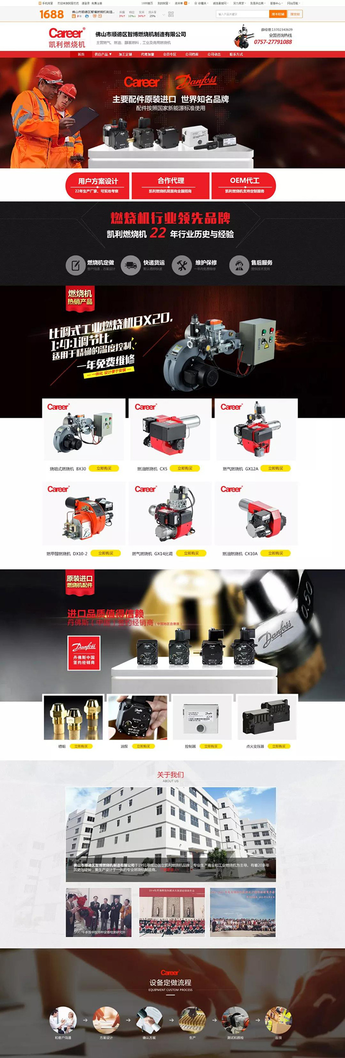佛山市顺德区智博燃烧机制造有限公司,丹佛斯(中国)签约经销商,旗下拥有Career(凯利)燃烧器产品品牌,Career(凯利)燃烧器属港商投资的专业燃烧机,是一家有着19多年历史的集生产设计于一体的专业化燃烧器制造商,在低排放燃烧技术领域有着丰富的经验。在19多年的时间里, Career(凯利)生产各种燃油、燃气燃烧器,其技术水平处于领先地位,产品行销中国、香港、越南、马来西亚、俄罗斯、巴基斯坦、南美及中东国家,为世界各地的用户提一流的产品,一流的品质,一流的服务。